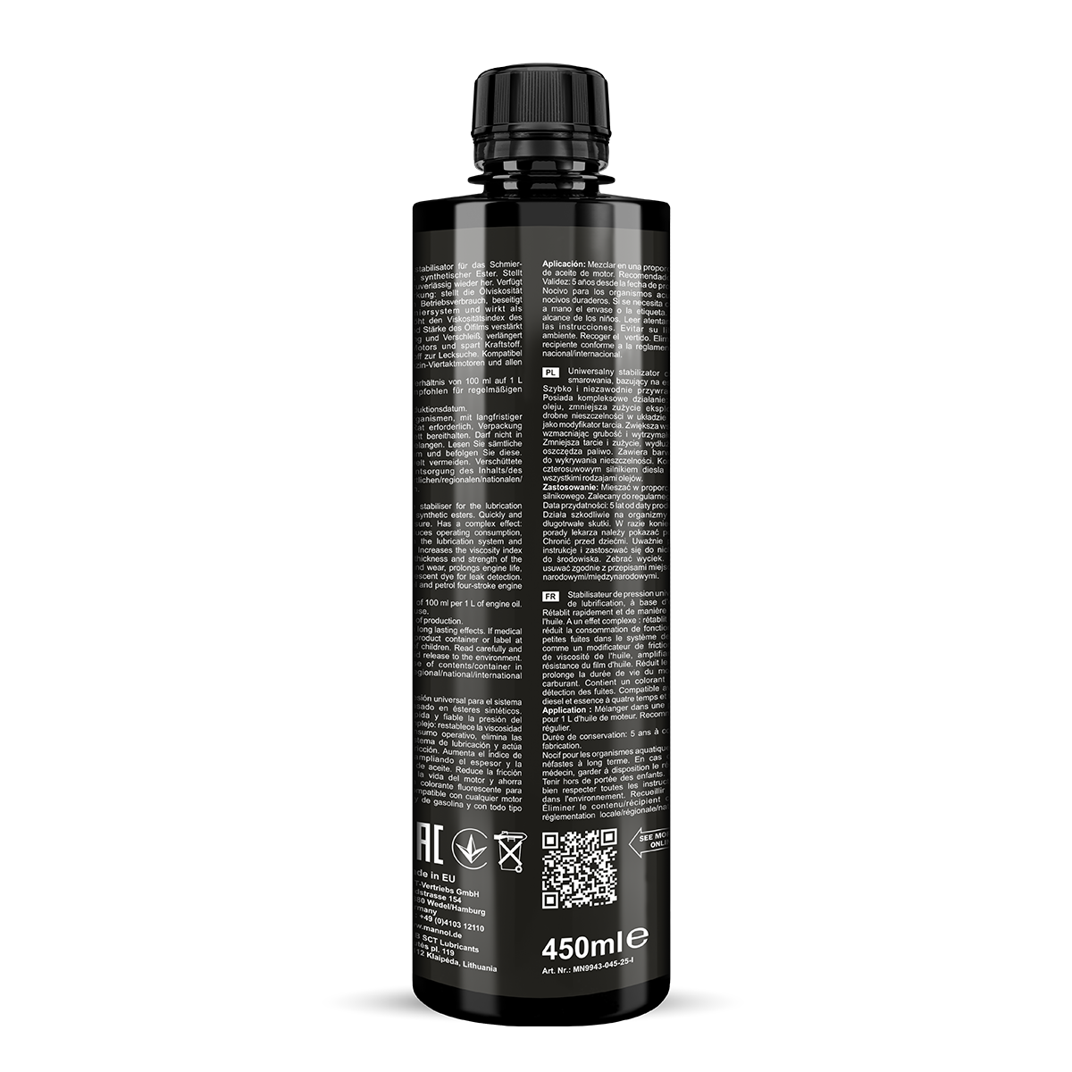 Innovative multifunctional engine protectant by stabilising the pressure in the lubrication system – an additive for engine oils based on synthetic esters (Group V oils). It is a complex product: a viscosity stabiliser protecting the oil from liquefaction, a sealant of the engine lubrication system and a friction modifier. It is suitable for all types of four-stroke engines – diesel and petrol engines and all types of oils – synthetic, semi-synthetic, mineral, including those containing esters.