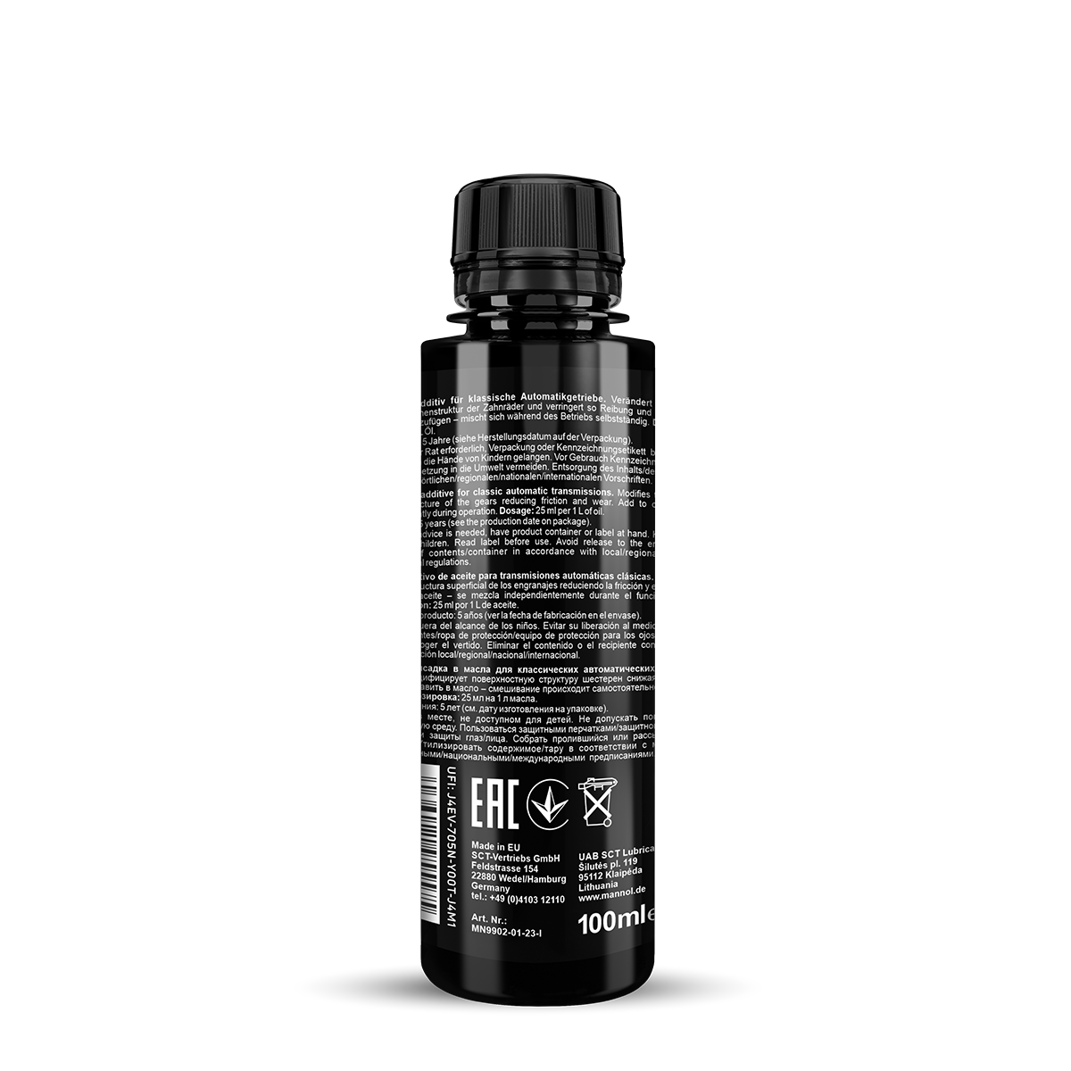 Getriebeoel-Additiv Automatik is an oil additive for classic automatic transmissions and double-clutch automatic transmissions. Recommended for extreme operating conditions and for gearboxes with a high degree of wear.