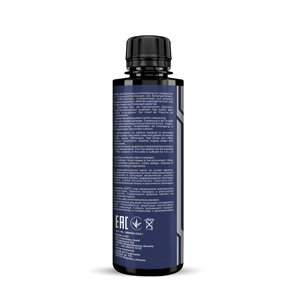 Application: Preheat the manual transmission unit to operating temperature. Pour the additive into the heated transmission oil. The content of the bottle is enough for 4-5 liters of transmission oil. If there is a strong leak, you can use two bottles. Recommended for permanent use.