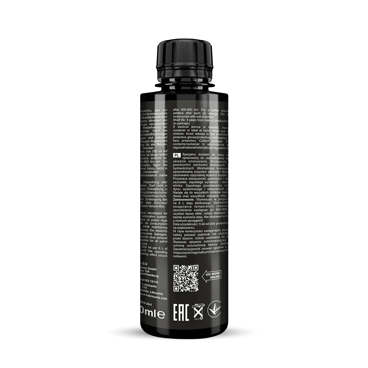 Application: Add to the engine oil at any time. Warm the engine up and let it run idle for 10 minutes. The sealing effect is achieved after 600-800 km. For a long-term effect, apply at every oil change. A can of 250 ml is enough for a 6 L oil system.