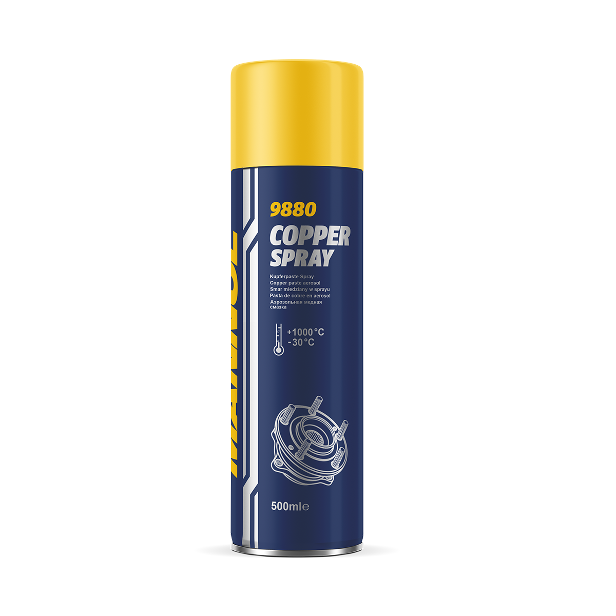 Application: Thoroughly clean (if necessary to metal) contaminated contact surfaces from rust, carbon, oxides, scale, etc. Degrease. Shake the balloon vigorously. Apply MANNOL Copper Spray in the required amount, according to the maintenance manual. After application, clean the spray head and nozzle. You can use the cylinder as long as the cylinder does not start to blow out the clean spray gas.