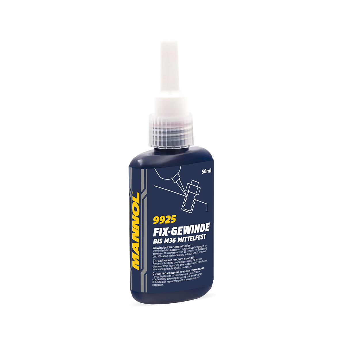 Fix-Gewinde Mittelfest 9924/9925-tool for fixing all types of threads (medium fixation): bolts, nuts, studs, screws, etc. Prevents self-unscrewing of fasteners due to increased loads and vibration. Suitable for all threaded connections in all parts of cars, motorcycles, commercial vehicles, as well as in industry and in everyday life. It can be used for sealing threads and narrow gaps, as well as as an anti-corrosion agent.