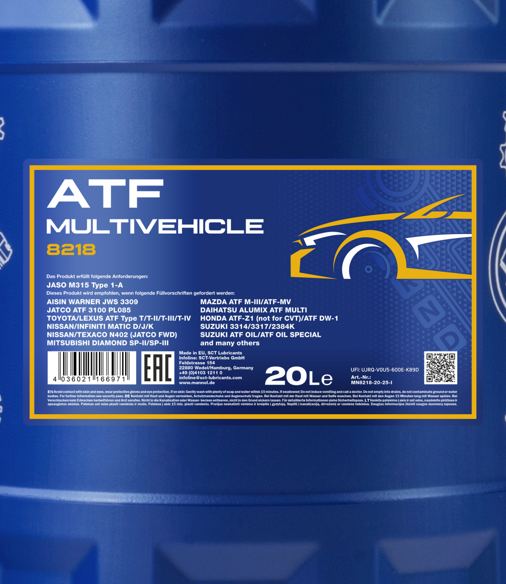 It ensures a flawless operation of an automatic gearbox, guarantees minimal wear, a lasting service life of transmissions and fuel economy. It was developed on the basis of the requirements set by the company AISIN WARNER.