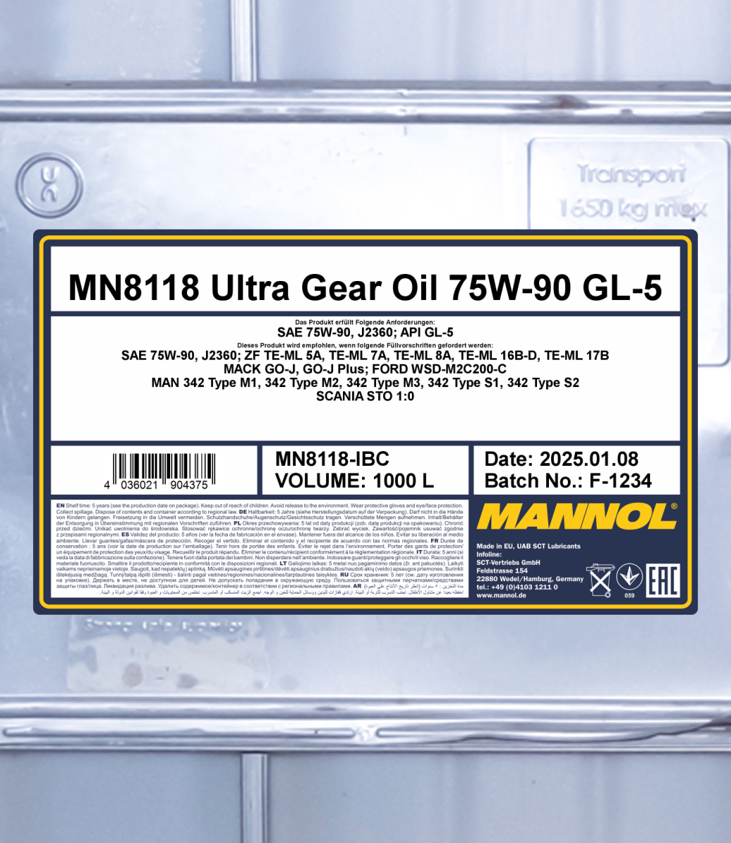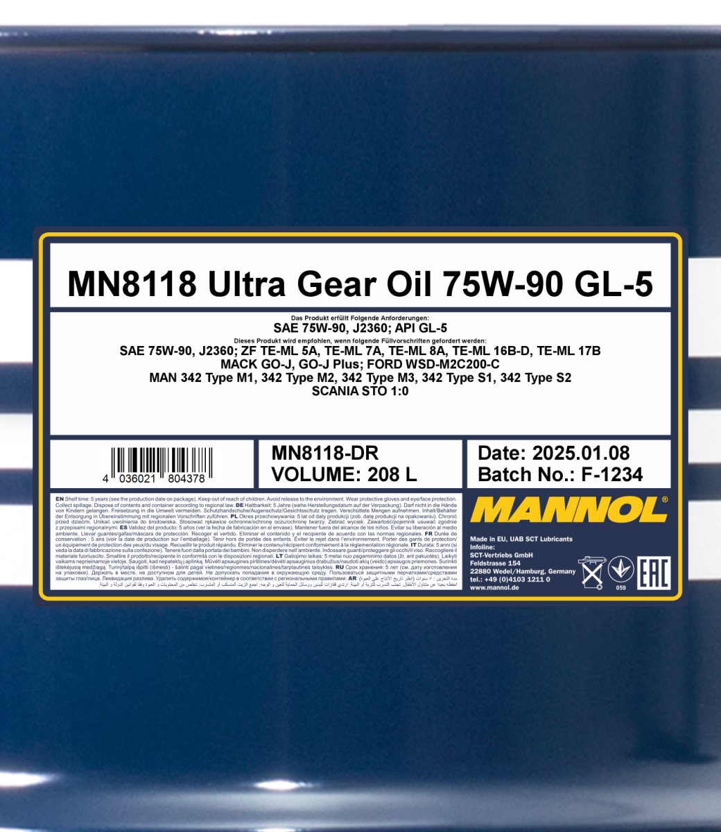 Universal energy-saving all-season semi-synthetic gear oil of the latest generation, meeting the latest international standards. Suitable for all types of main gears with hypoid and bevel gears, transfer cases, wheel reduction gears as well as for manual gearboxes and other transmission units where GL-5 grade oil is required. Meets the requirements of the latest global J2360 standard for gear oils.