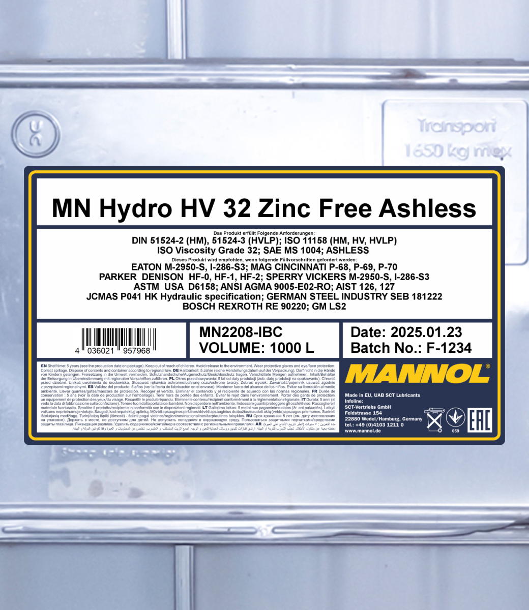 MANNOL Hydro HV ISO 32 Zinc Free 2208