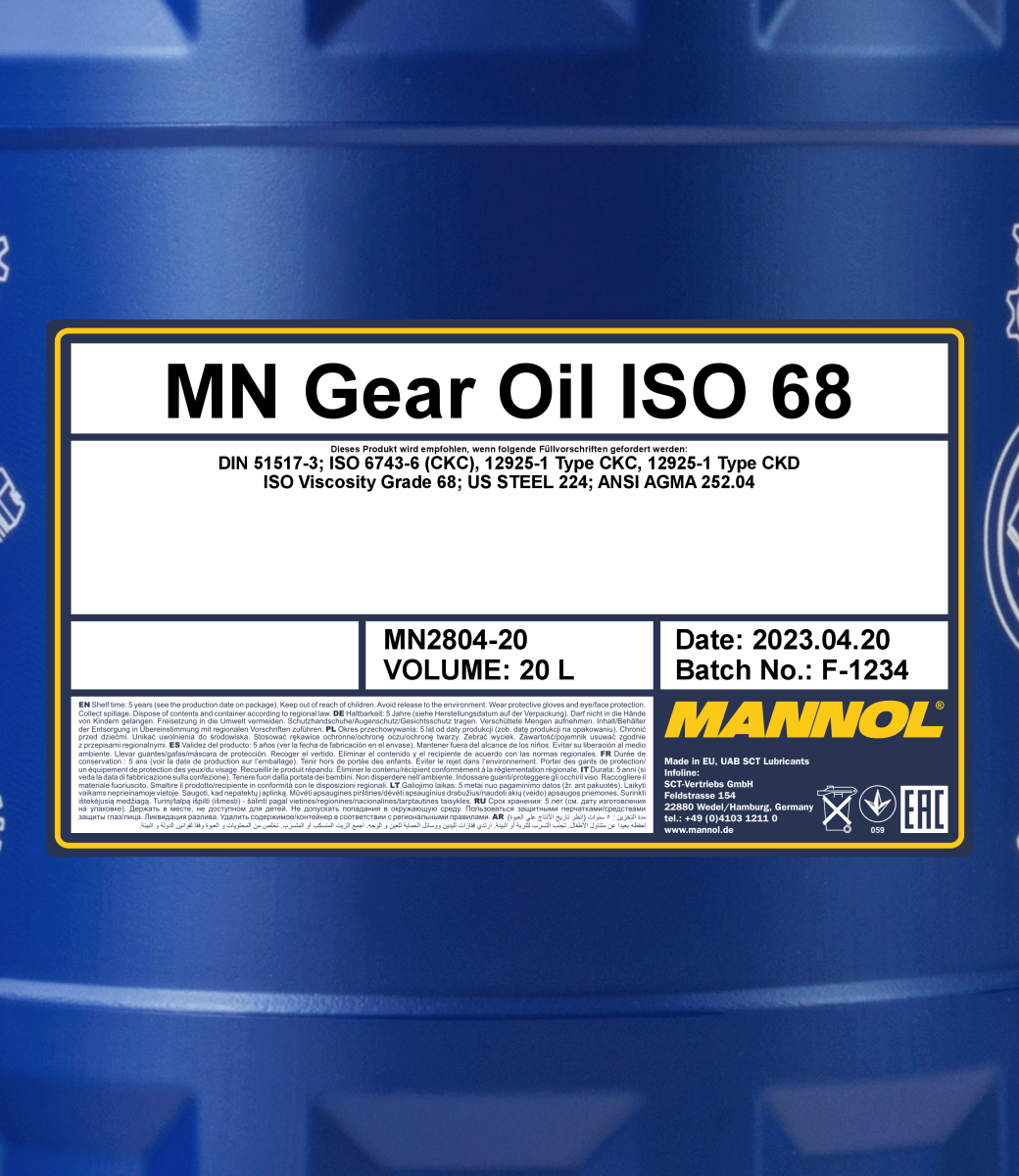 It is recommended for industrial closed gear wheels (reducers), lubricated by circulation or spraying (oil mist), especially when there are heavy loads and high temperatures, vibrations, high speed and sliding friction. It may be used for lubricating various mechanisms and separate parts that operate under heavy loads: all types of gear systems (including worm and screw), clutches and all types of bearings: roller, friction, etc., where the required level of operating properties is DIN 51517 Part 3 CLP and viscosity is ISO VG 68.