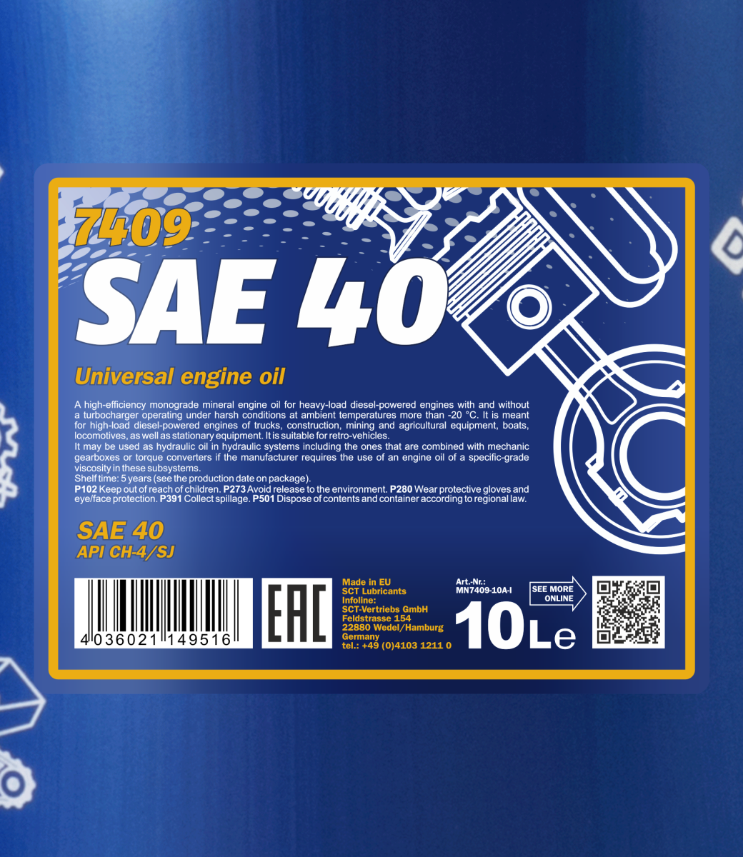 It is meant for high-load diesel-powered engines of trucks, construction, mining and agricultural equipment, boats, locomotives, as well as stationary equipment. It is suitable for retro-vehicles.