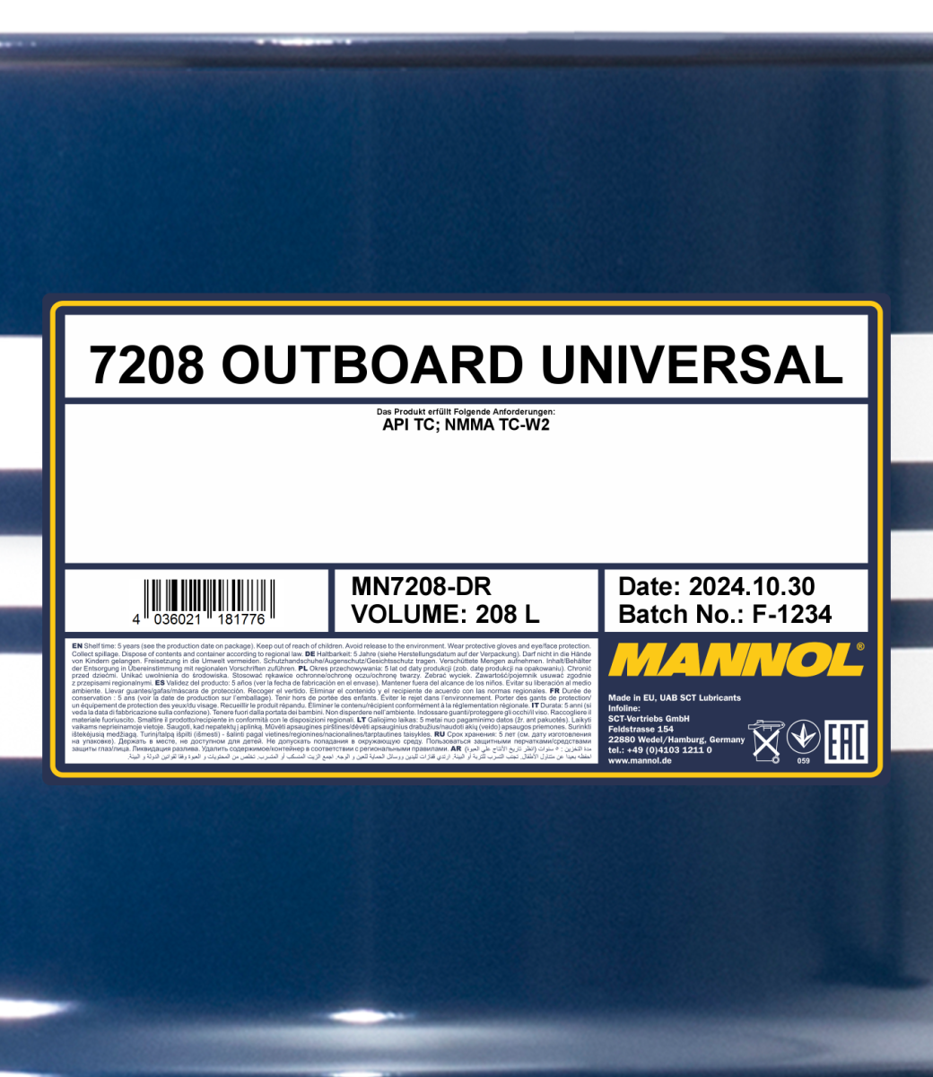 A high-quality mineral engine oil for modern 2-stroke petrol-powered outboard engines with water cooling that use petrol-oil mix. It is produced from a highly-purified basic oil and a special ashless additive package.