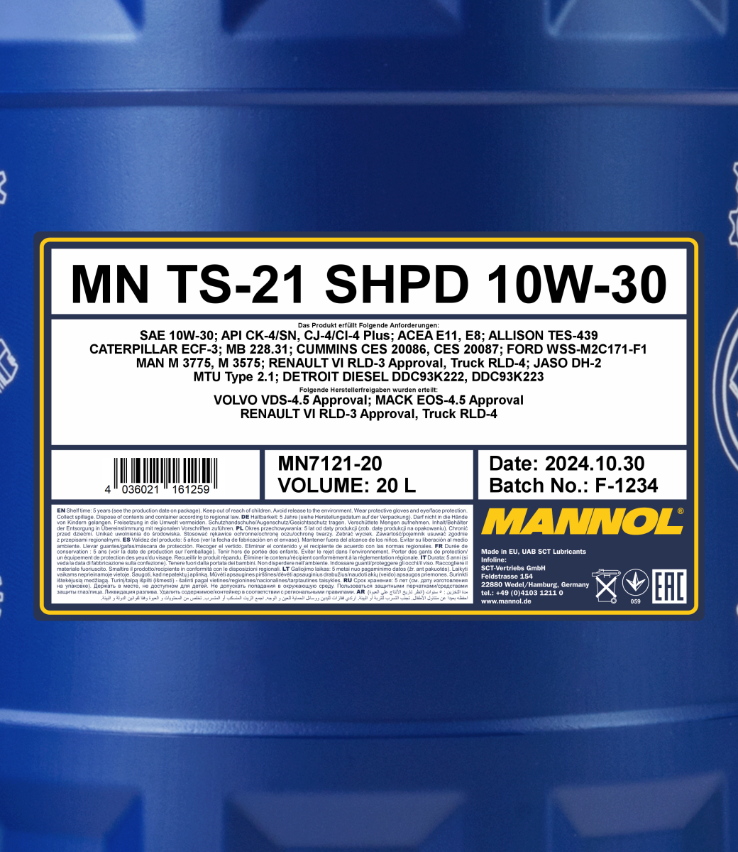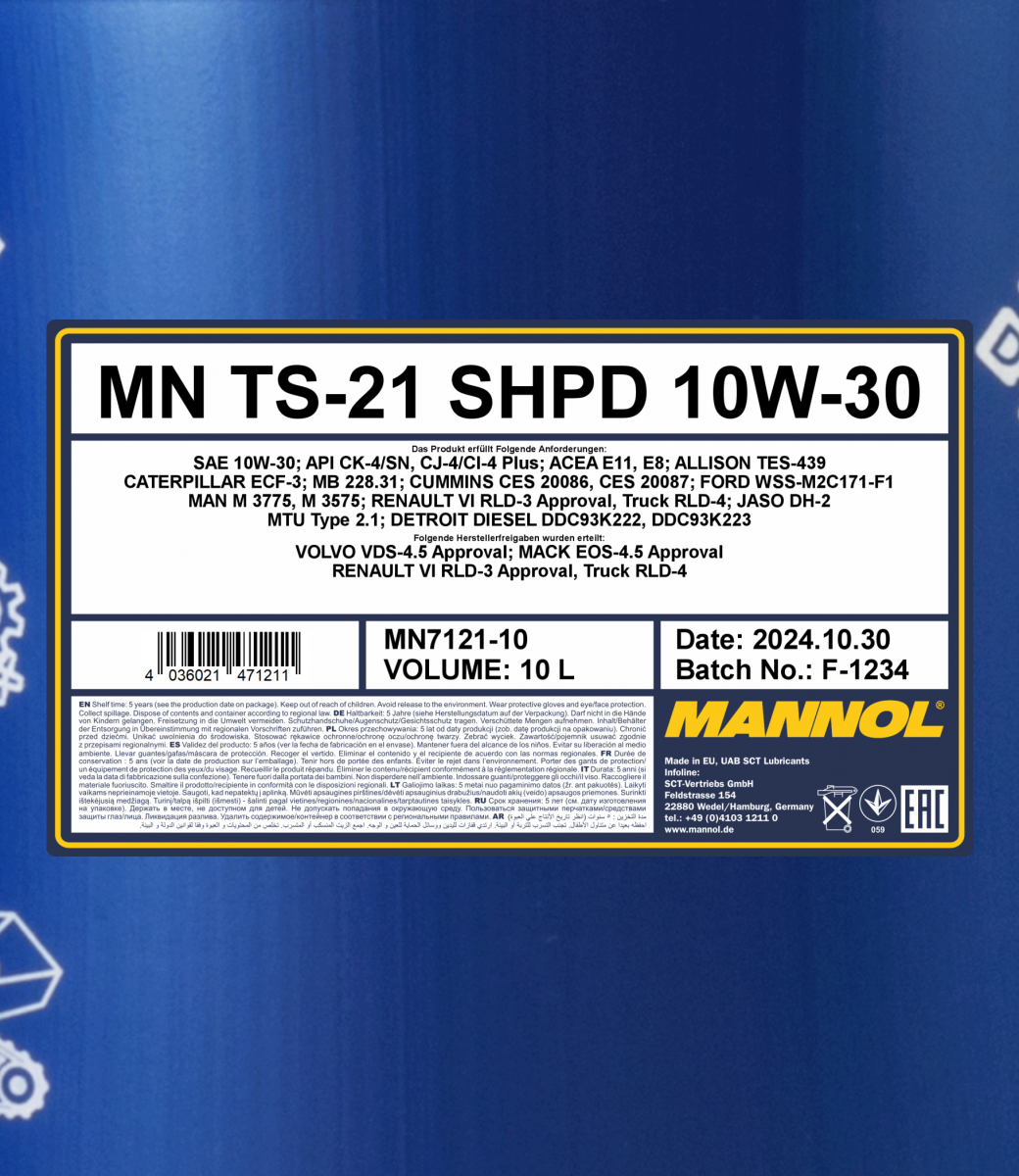 Designed for all types of heavy duty diesel motors (long distance trucks, buses, etc.), off-road machinery (construction, mining, agricultural) and special equipment from European, American and Asian manufacturers that meet the requirements of Euro I – V and VI where a performance level of CK-4 or lower is required.