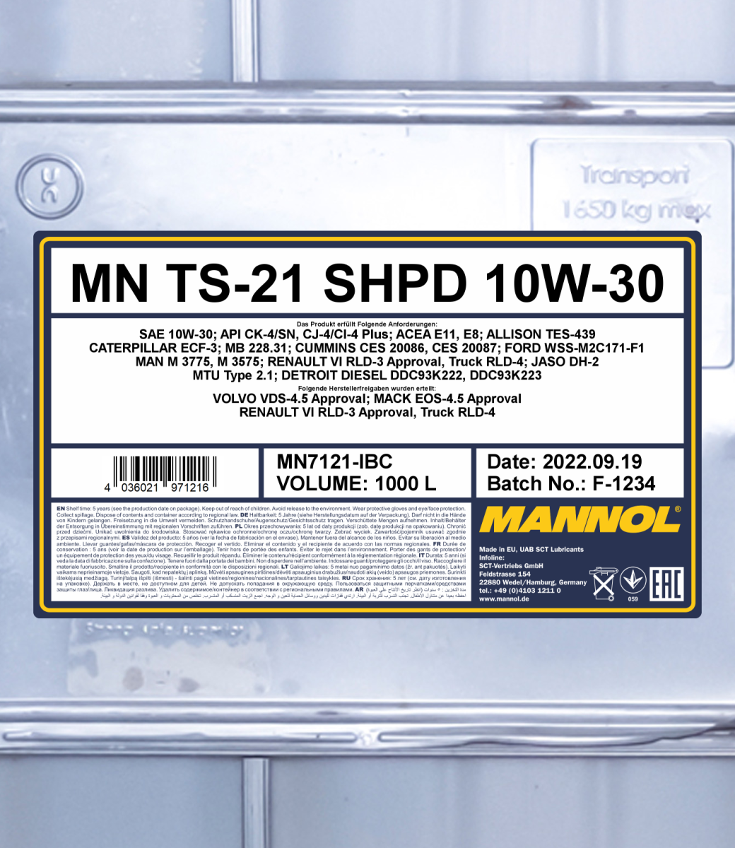 All-weather synthetic motor oil for heavy-duty and high-speed diesel engines of the latest generation with and without turbocharger, operating in severe conditions on low sulphur fuel. The oil has successfully passed road and laboratory tests at VOLVO, MACK and RENAULT centres and has their written approvals.