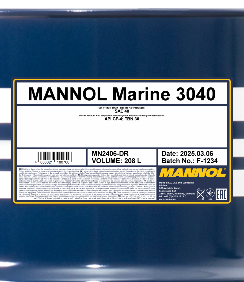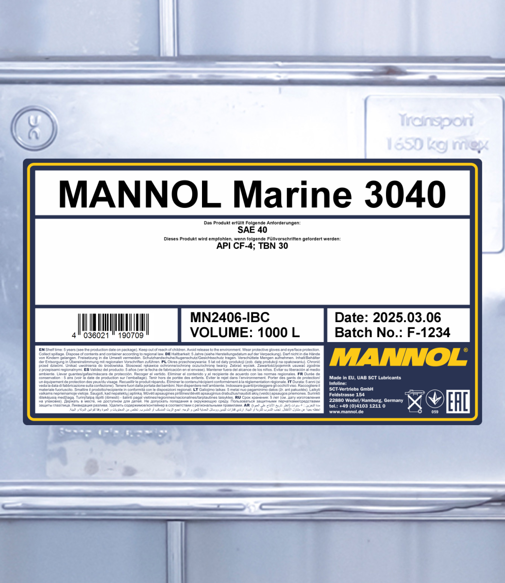 High-alkaline mineral motor oil for medium-speed heavy marine diesel engines operating on fuel oil with a sulfur content of up to 4.0%.