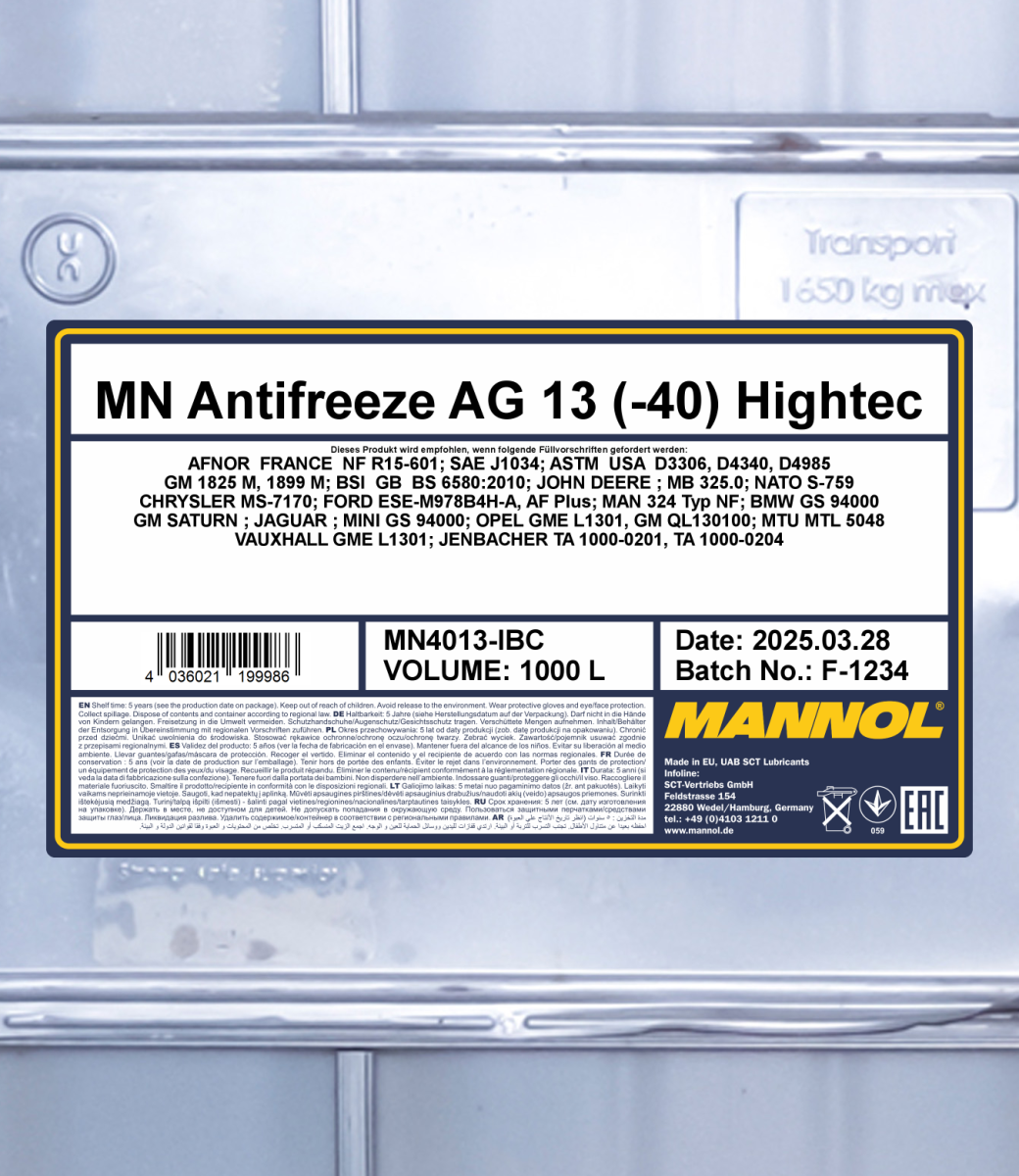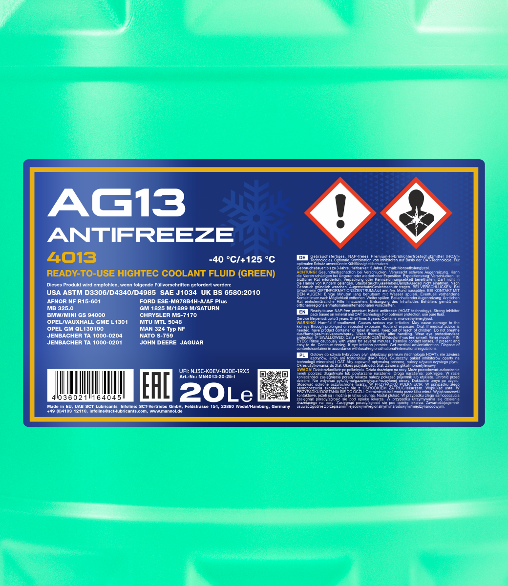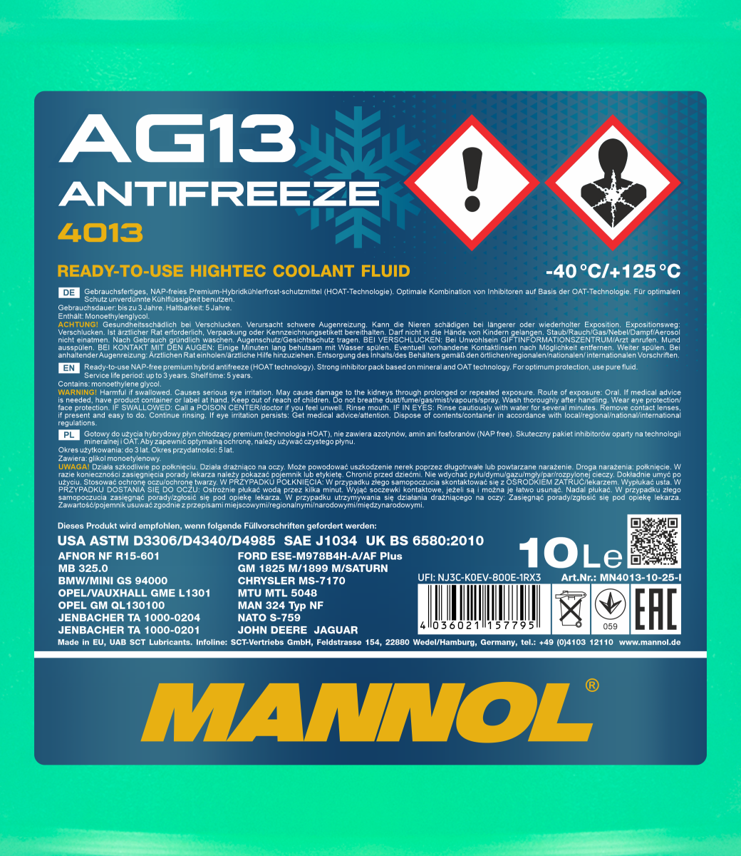 - The high-efficiency additive package ensures an exceptional stability of operating properties of the antifreeze throughout the entire service life;