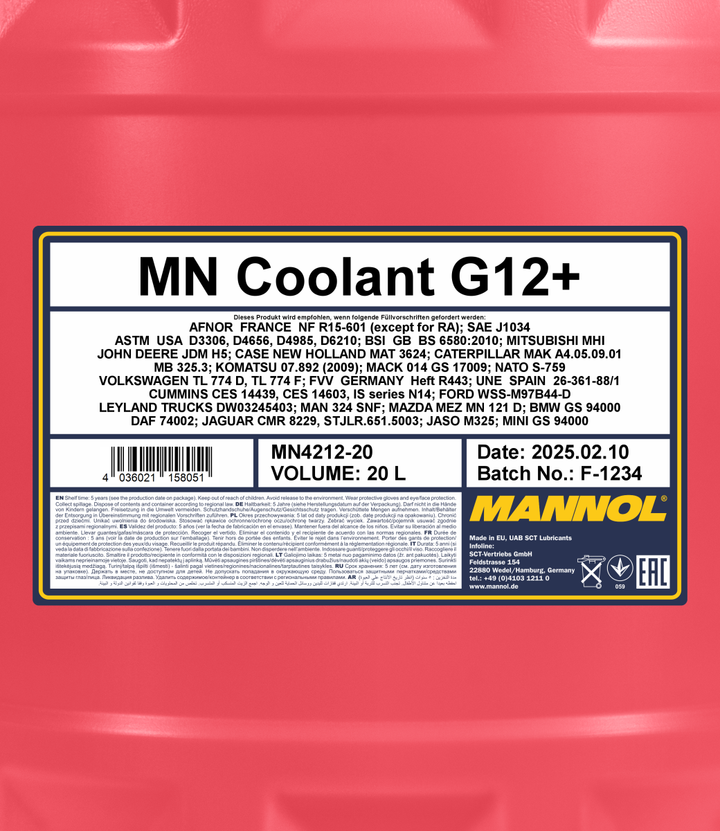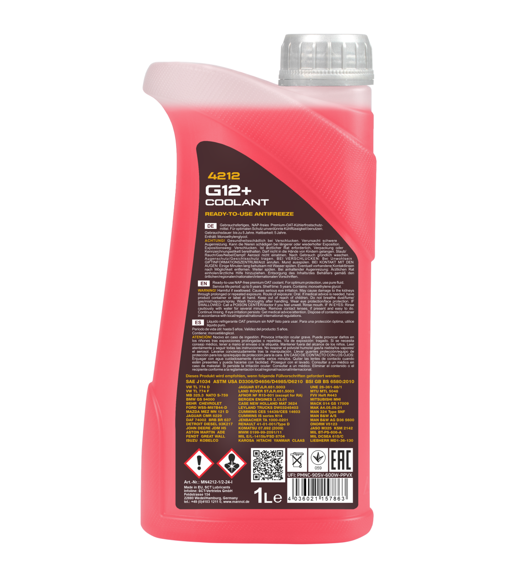 - The highly effective carboxylated additive package (OAT) ensures an exceptional stability of service qualities of the antifreeze throughout the entire service life;
