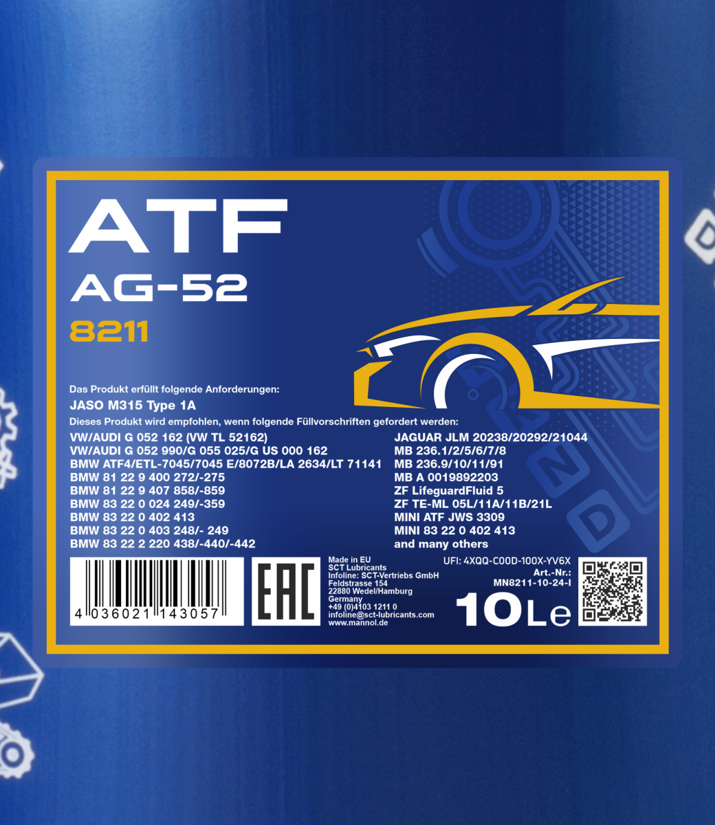 Un fluide de transmission synthétique (ATF) spécifique toutes saisons pour les secteurs de transmission automatique 4-5 vitesses modernes du groupe ZF. Il ne convient pas aux transmissions automatiques à 6 rapports. Il assure un fonctionnement impeccable d'une boîte de véhicules automatique, garantit une utilisation minimale, une durée de vie durable des transmissions et une économie de carburant même sous des charges maximales. Il a été élaboré en locataire compte des exigences particulières du groupe VW G 052 162.